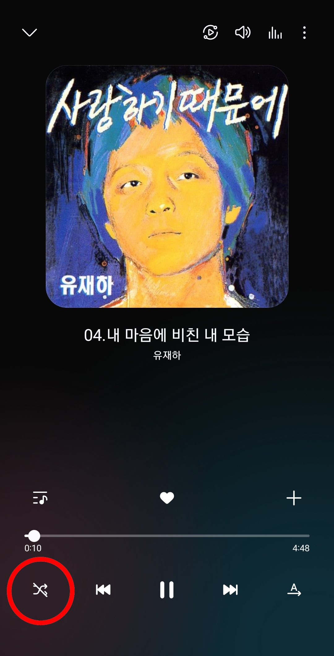 이 경우 가장 먼저 확인해야 할 것은 현재 재생 모드이다. 재생 화면에 있는 셔플 아이콘이 활성화되어 있다면 이를 꺼주고, 다시 곡을 재생하면 순차 재생이 정상적으로 작동한다.