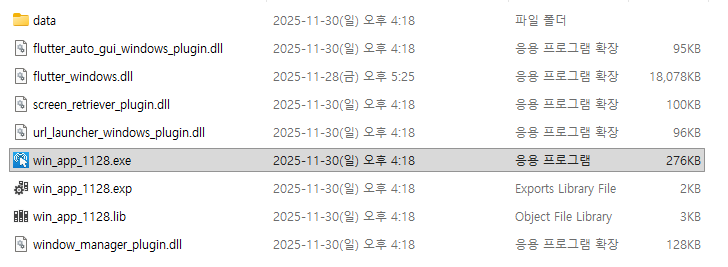 파일 압축이 풀리면 win_app_1128.exe 이 실행 파일 입니다.