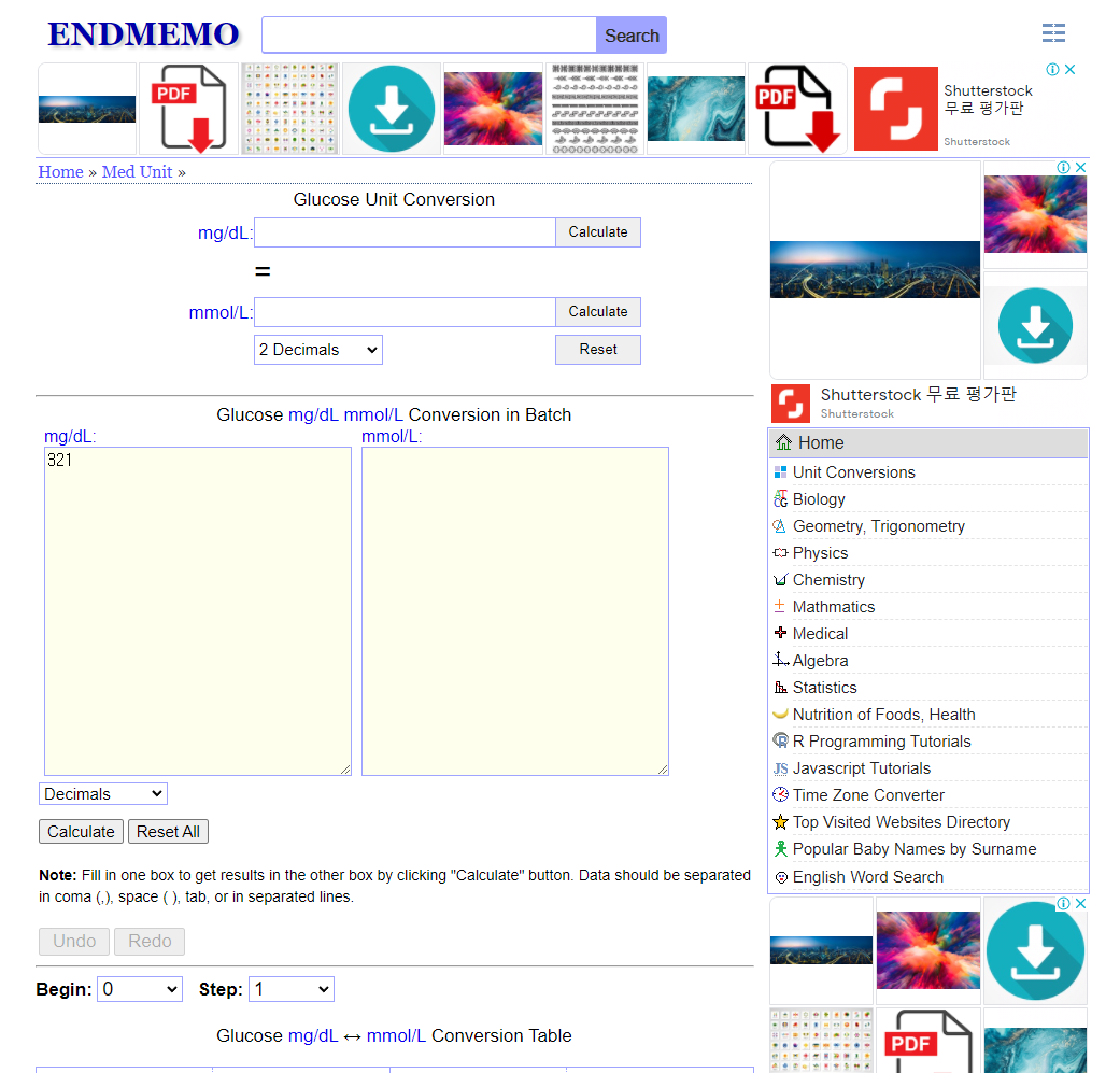 그러나 외국 사이트에서 보면 mmol/L 수치를 볼 수 있다.